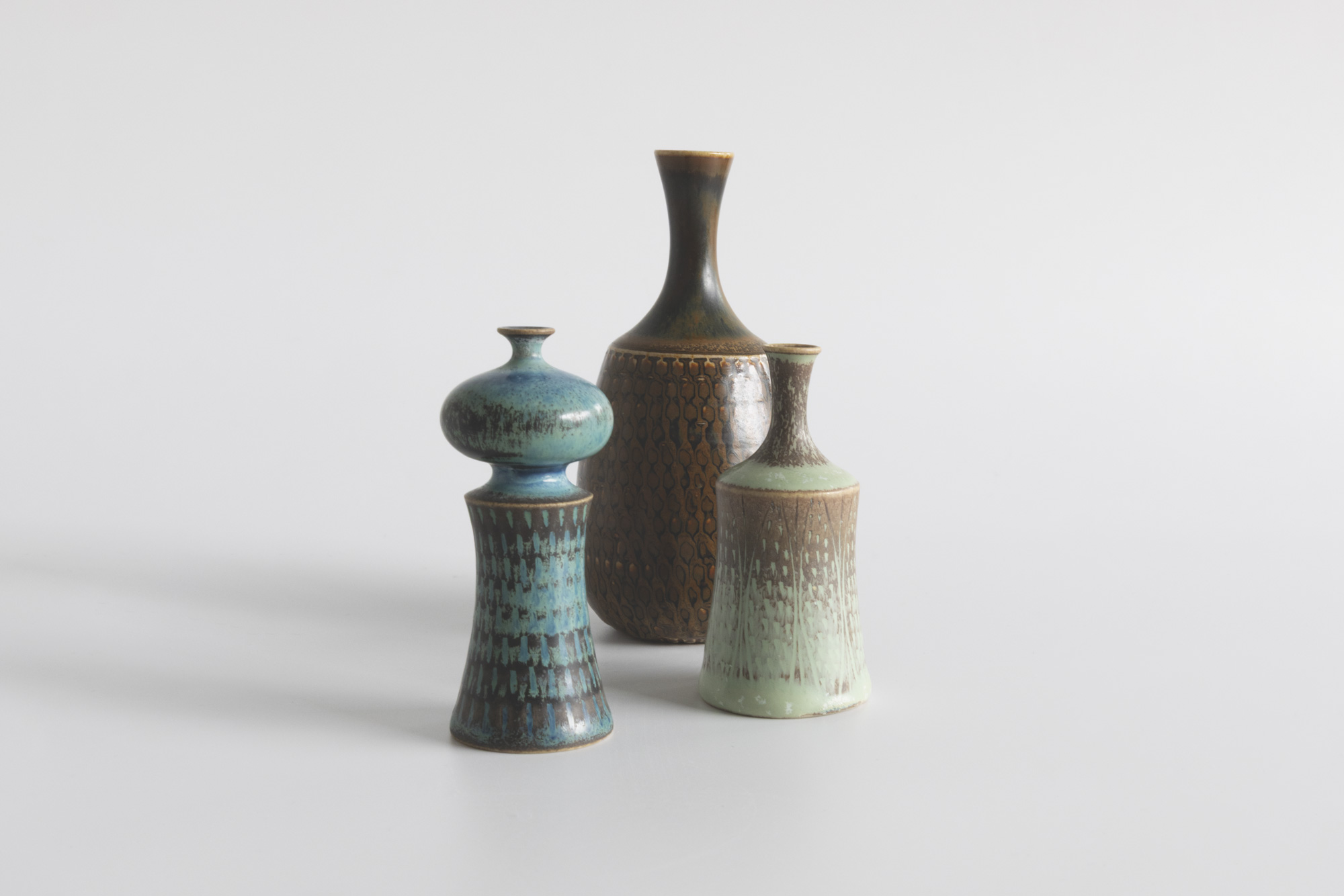 コーゲの重厚な造形、フリーベリの精緻なフォルム、リンドベリの自由で装飾的な表現ー。それぞれ異なる個性を追求しながらも、師弟関係を通じて結びつき、北欧陶芸に新たな展開をもたらしてきました。 素材と造形への探究心と釉薬の試みによって生み出された豊かな作品群は、今日に至るまで国際的に高く評価され、モダニズム工芸の象徴とされています。