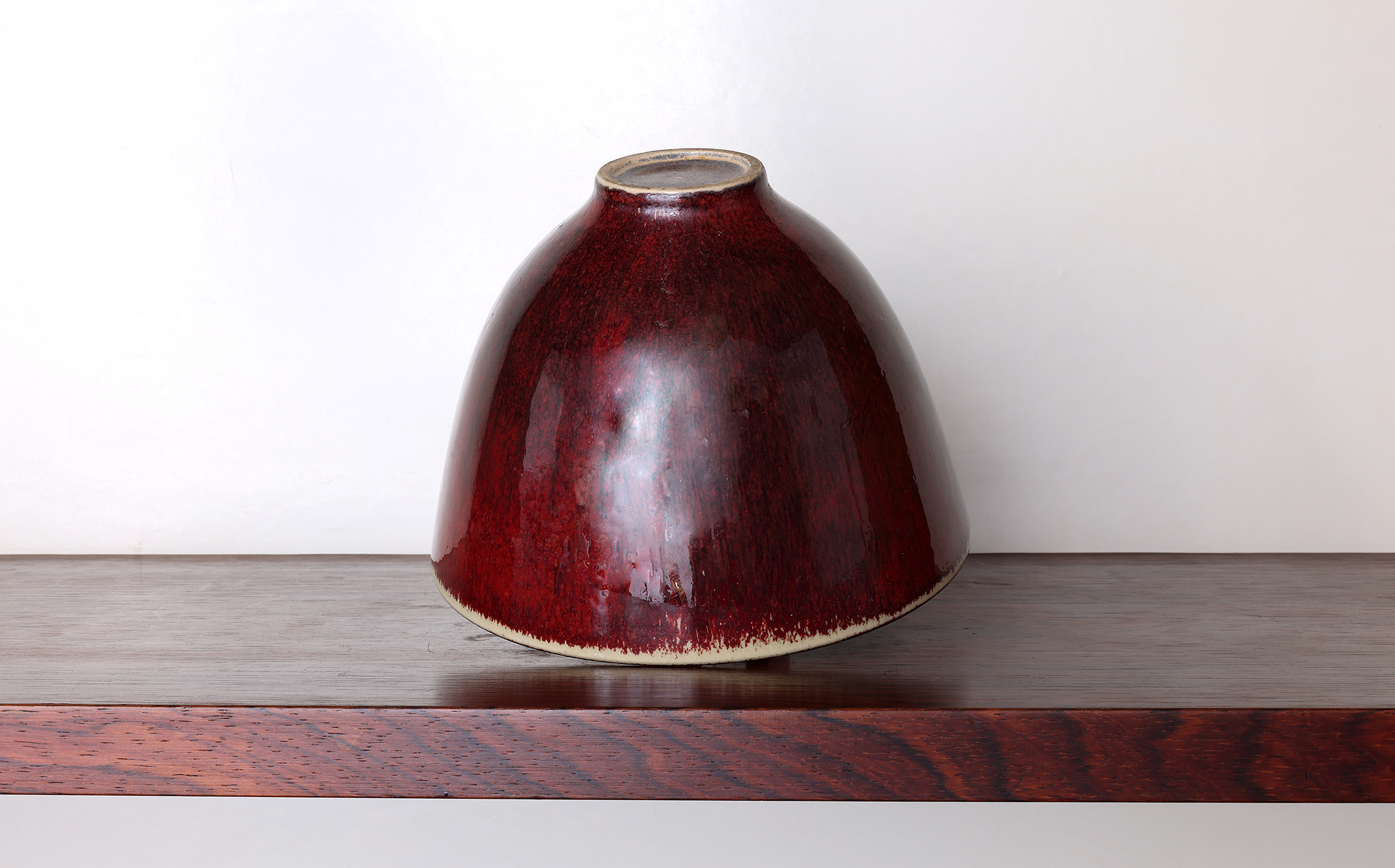スウェーデンから出てまいりました作者不明の辰砂釉の美しい鉢作品です。一見すると、カールハリー・スタルハンやスヴェン・ヴァイスフェルトの作品かと思いましたが、高台内のサインがありませんので、作者が不詳です。この辰砂釉は見事な赤い色を出すのが難しいらしく、当時の北欧諸国の作家たちが挑戦した釉薬でもあります。