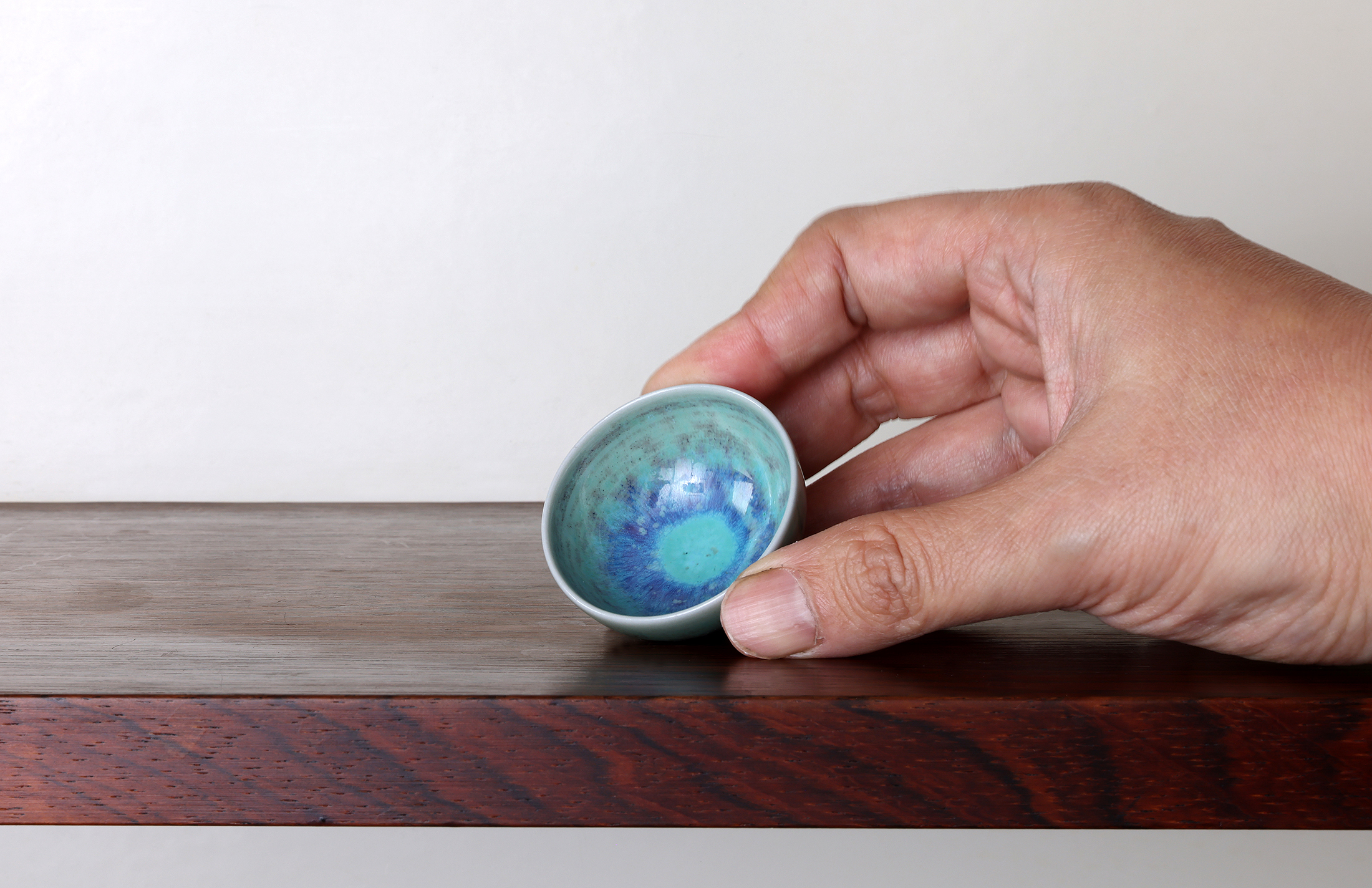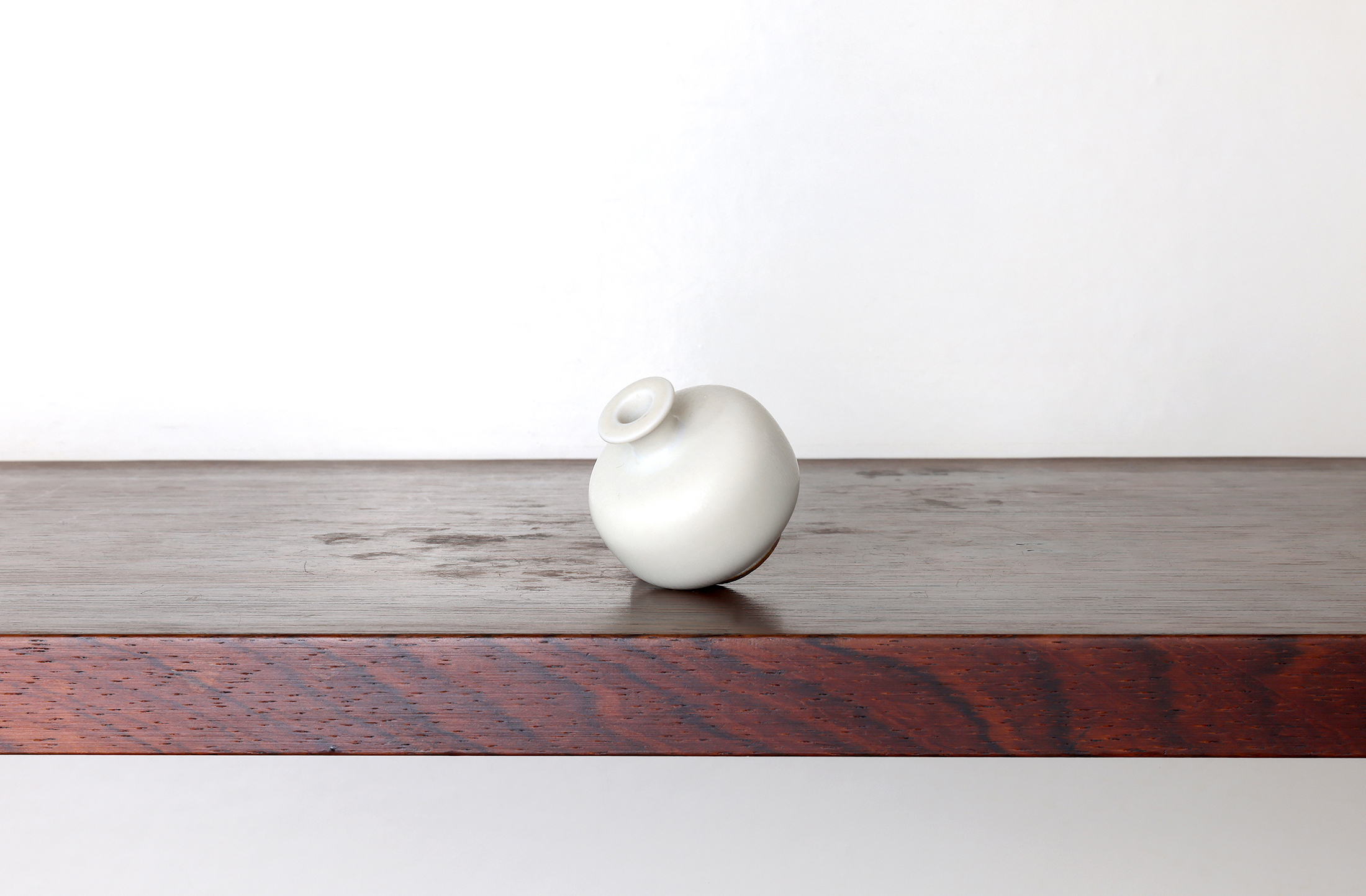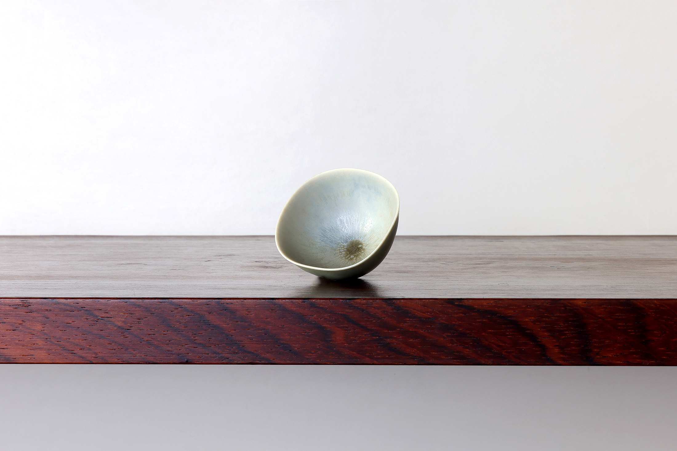 ベルント・フリーベリの淡い色味の釉作品たちです。釉を水の様にサラサラと淡くすることで、どうやら表情が水彩画の様に現れる様で、それは赤茶から黒茶、青磁や瑠璃釉など全てに存在しております。上から透明釉を施釉するタイプのものも、独特の軽やかな表情が現れ、見どころ満載です。